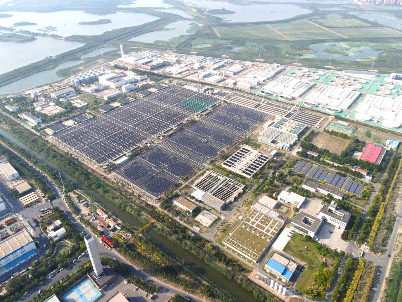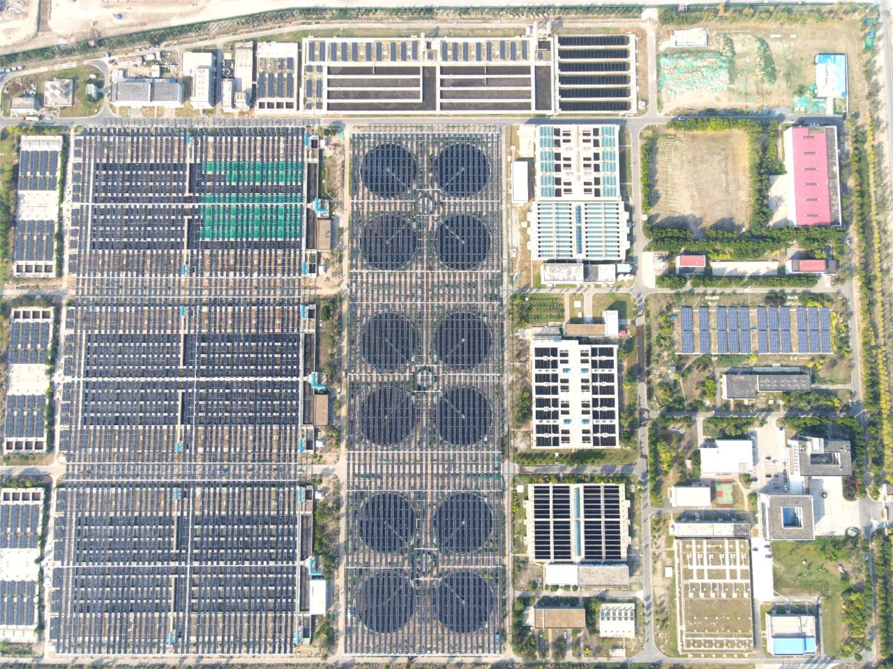 津沽污水處理廠是創業環保集團發展“五維一體”商業模式的首座標桿廠。該項目污水處理規模為65萬噸/日,高品質再生水供水能力7萬噸/日,污泥處理規模800噸/日,新能源供冷供熱服務面積2.4萬㎡,光伏裝機容量13.48MWp,設計年發電量1390萬kWh,減少碳排放約12260噸。