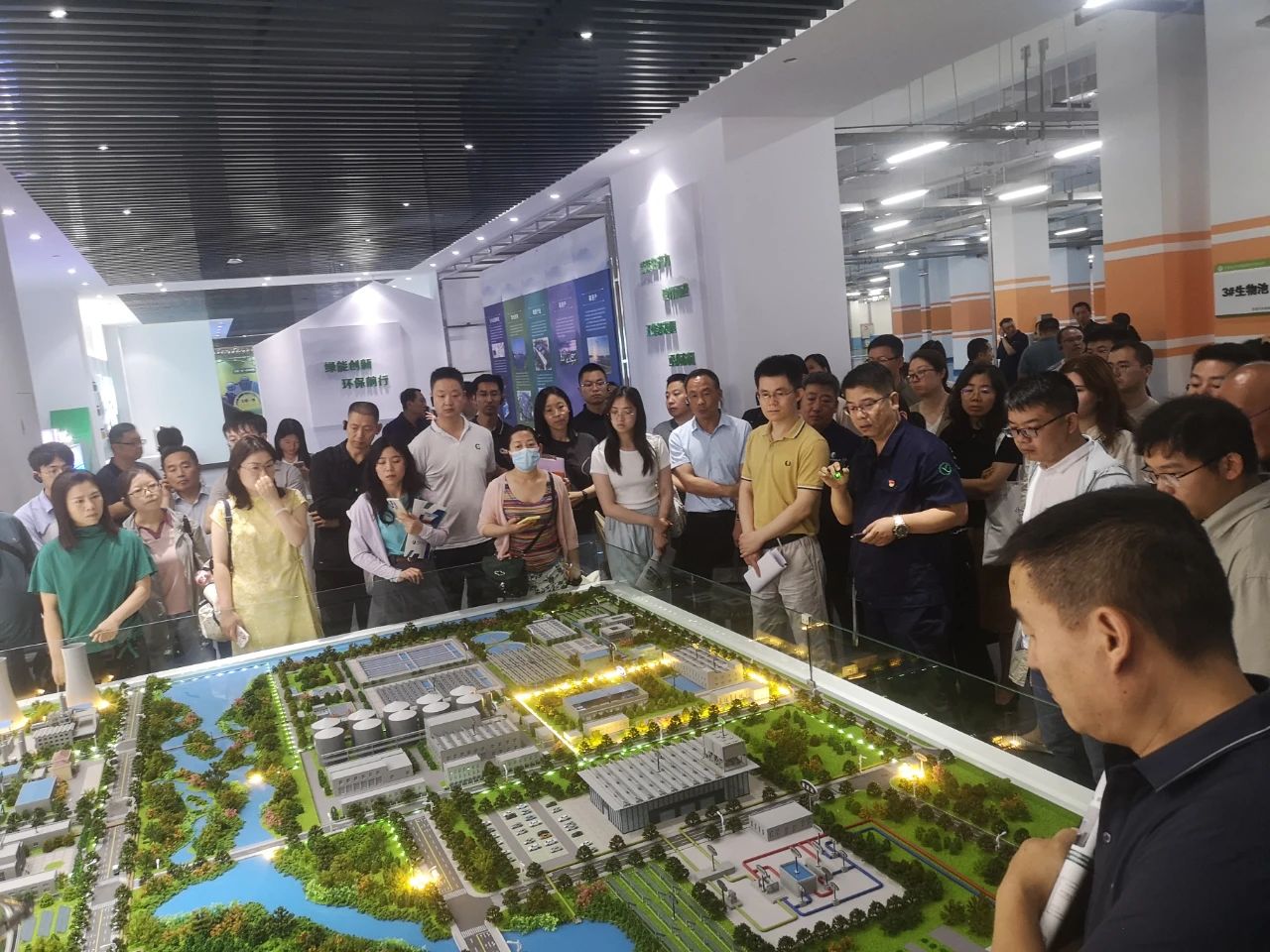 考察團首先來到東郊廠雙碳實踐培訓基地,參觀實景模型、建廠舊物、影像資料、文字照片等珍貴歷史資料,深入了解天津的污水治理發展史,通過沙盤模型整體介紹和功能展示,清晰直觀了解了創業環保集團由“高效污水處理、高品質再生水、污泥資源化利用、新能源供冷供熱、分布式光伏+儲能”五項產業板塊構成的“五維一體”商業新模式。在東郊再生水廠,考察團詳細聽取天津市污水資源化利用、再生水生產運營情況,對天津節水產業開展交流探討,并充分肯定了再生水利用為天津市節水型城市建設做出的貢獻。