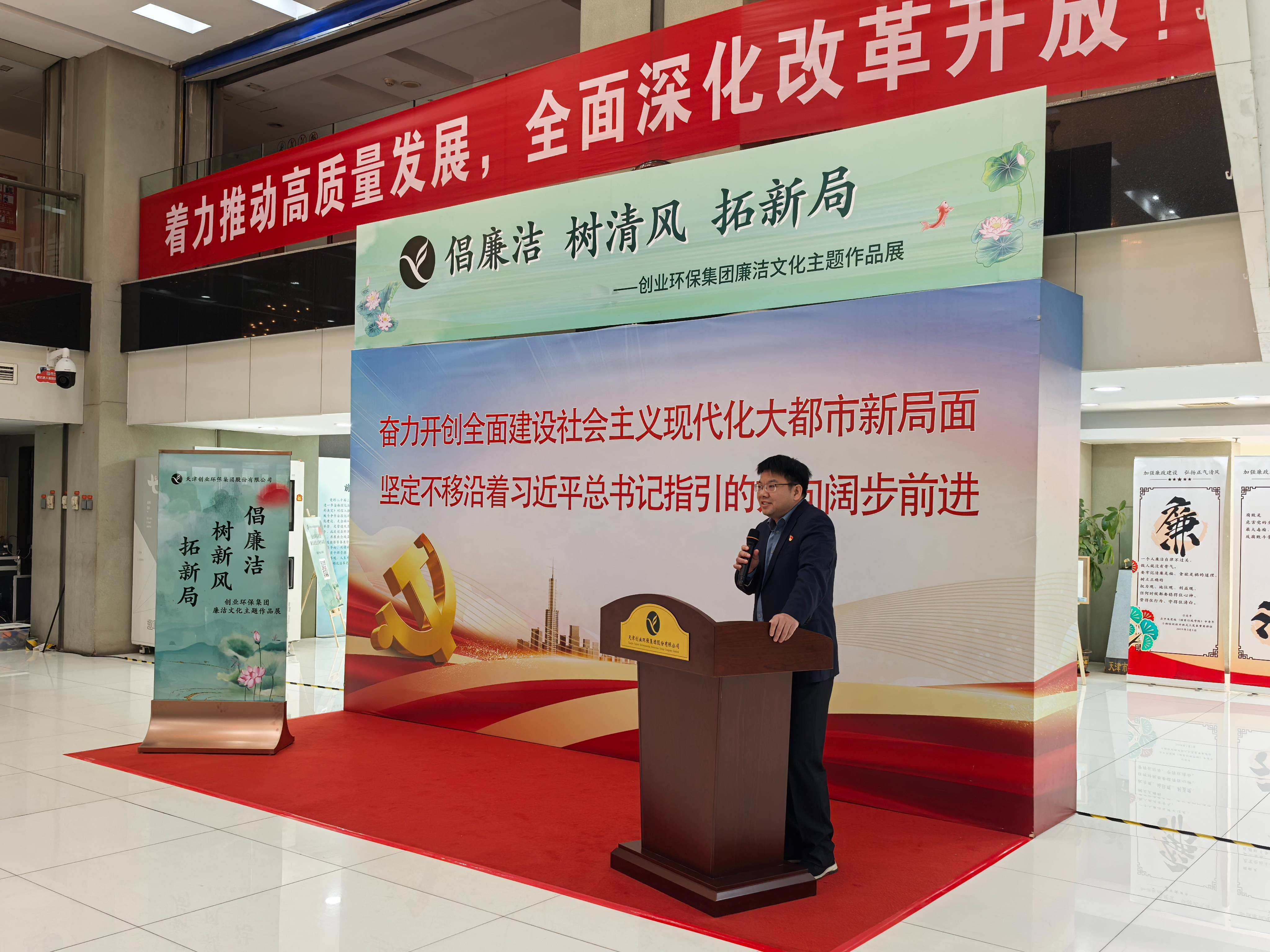 為深入貫徹二十屆中央紀委三次全會對加強新時代廉潔文化建設重要部署,把新時代廉潔文化建設融入黨的宣傳思想文化工作,10月29日,創業環保集團黨委、紀委聯合舉辦“倡廉潔 樹清風 拓新局”廉潔文化主題作品展啟動儀式,并為作品巡展揭牌。創業環保集團黨委副書記潘光文主持儀式,城投集團副總經理、創業環保集團黨委書記、董事長唐福生出席并講話。