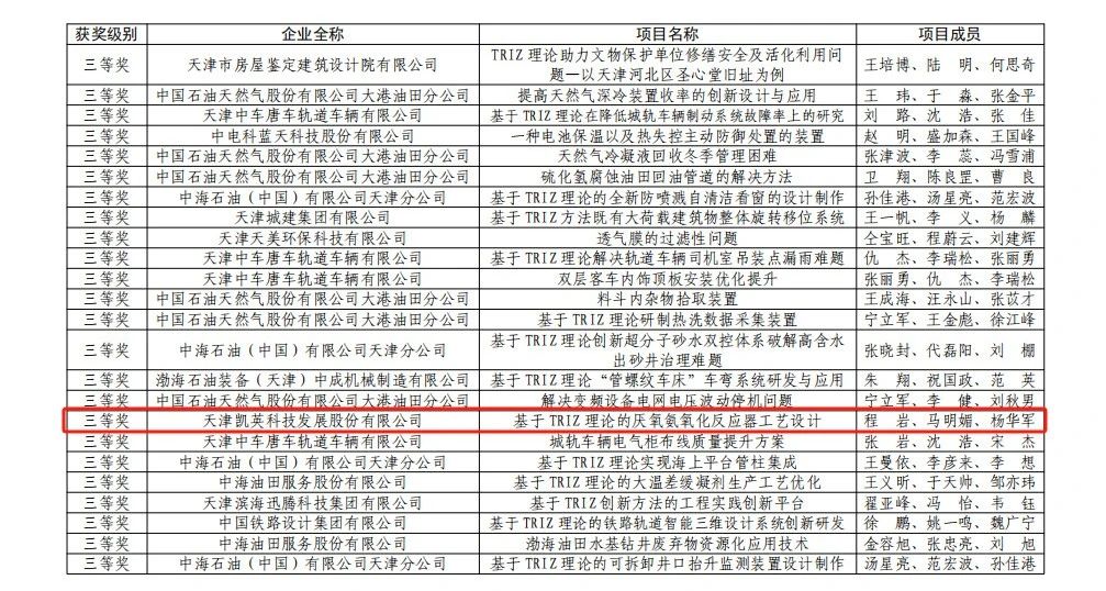 近日,創業環保集團申報的項目“基于TRIZ思想的污水處理廠活性污泥物性監測設備的開發和應用”,以及創業環保集團凱英公司申報的項目“基于TRIZ理論的厭氧氨氧化反應器工藝設計”,分獲2024年中國創新方法大賽(天津賽區)暨第九屆天津市創新方法大賽二等獎和三等獎,該賽事由天津市科學技術協會、天津市科學技術局、天津市教育委員會、天津市人力資源和社會保障局等8家部門單位聯合舉辦。